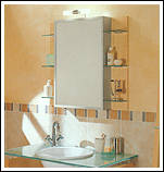 Waschtisch mit Unterschrank, Spiegel, Sitzbank und Hochschrank