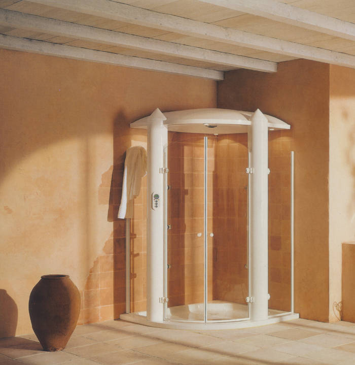 Doppeltür und Scheiben des Duschtempel sind aus Echtglas,