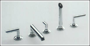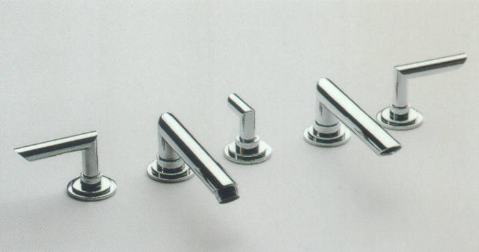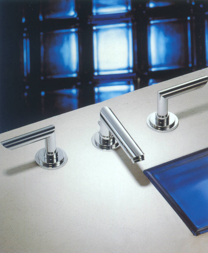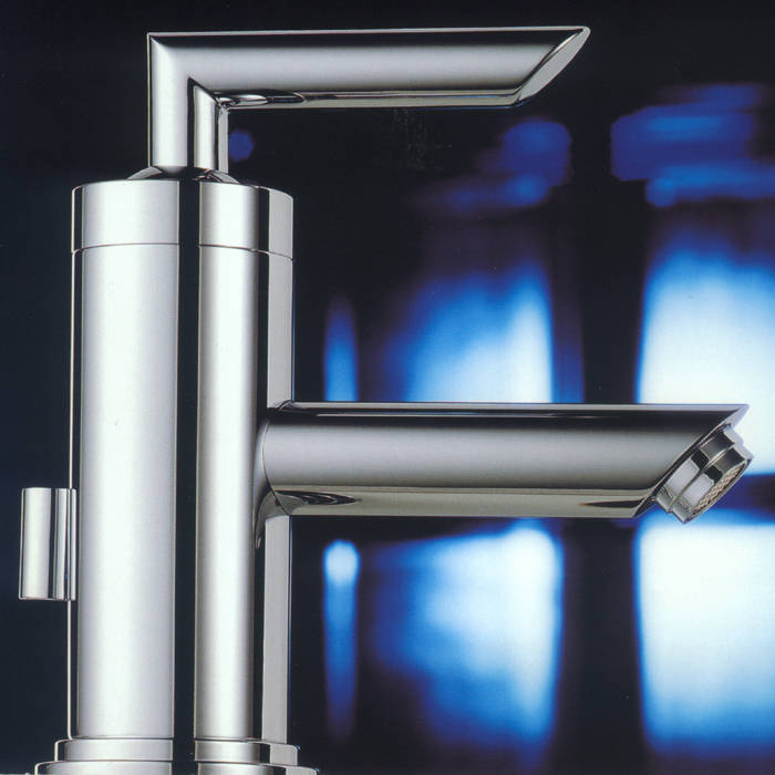 Diese formal strenge Armaturenserie verkörpert Eleganz und Raffinesse. Bemerkenswert: der ausdrucksvolle Gehrungsabschluss von Auslauf und Griffen. Eine außergewöhnliche, exklusive Armatur für Ihr Bad.