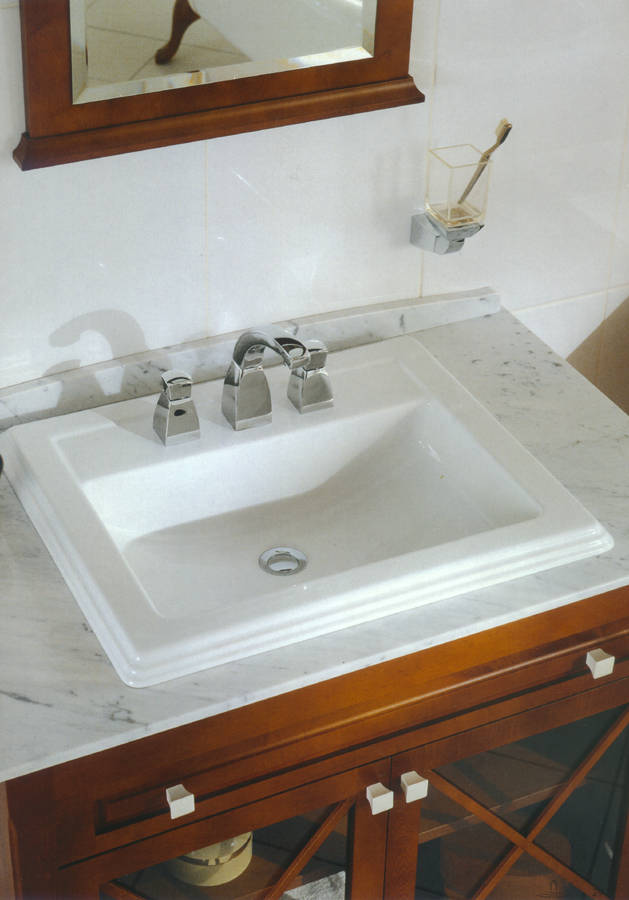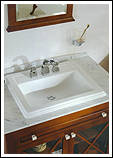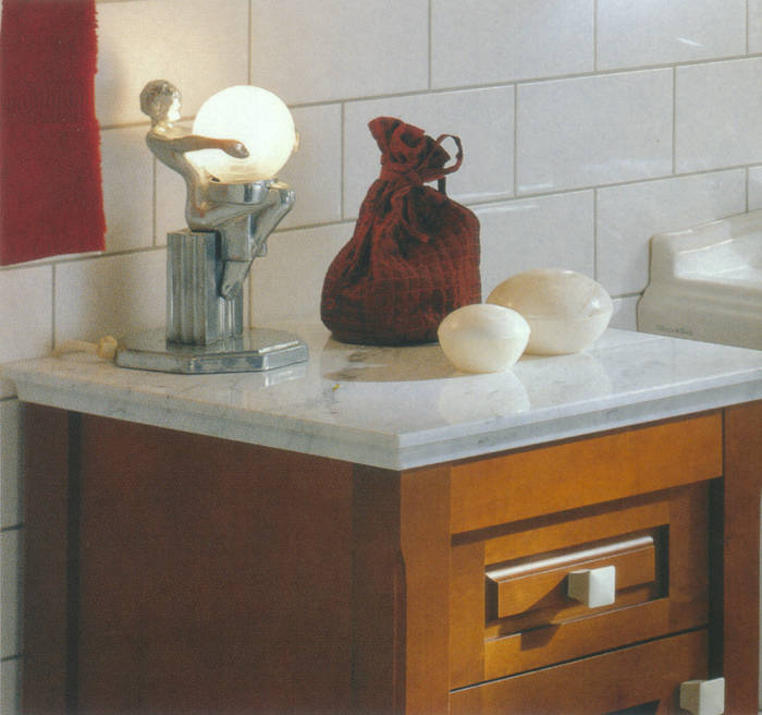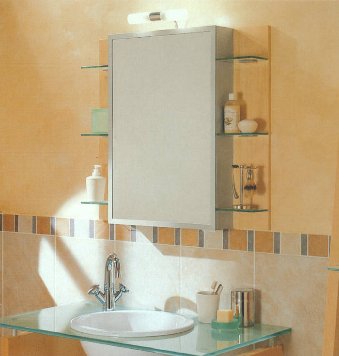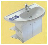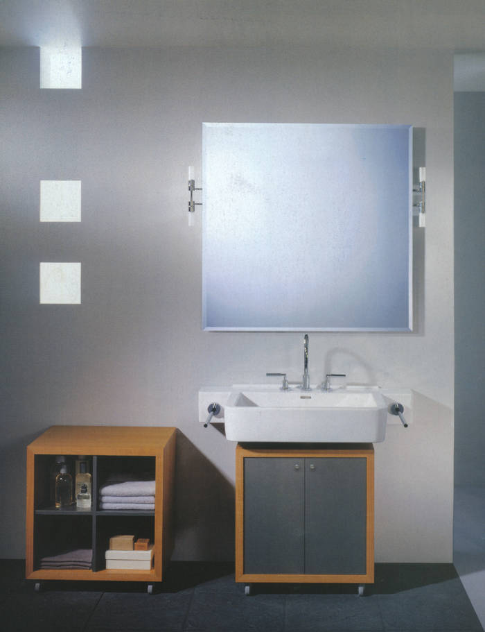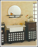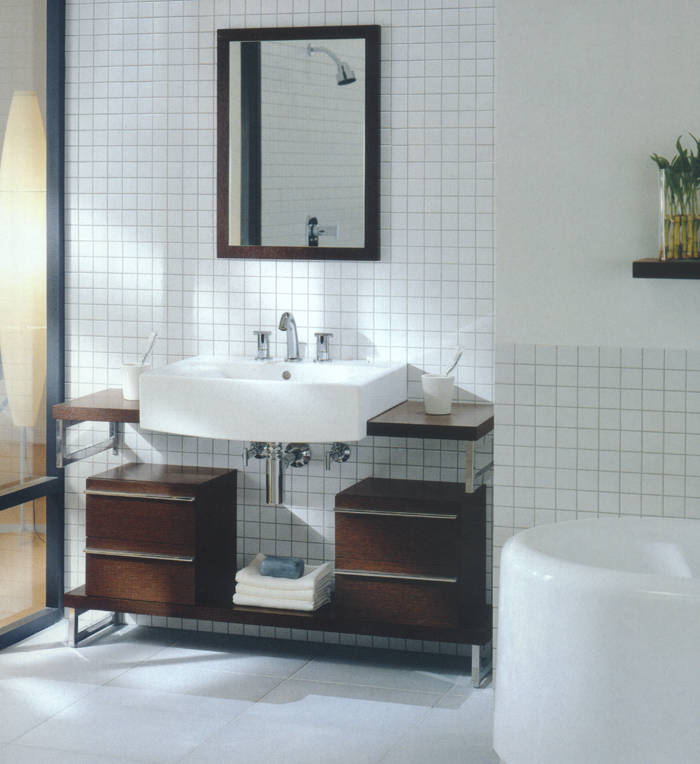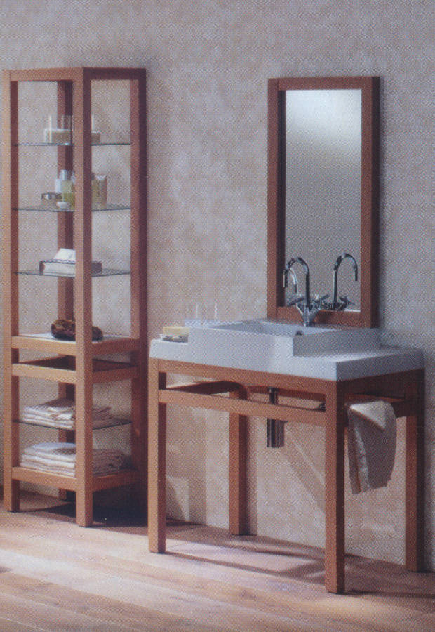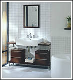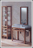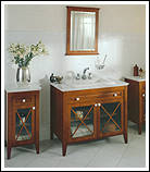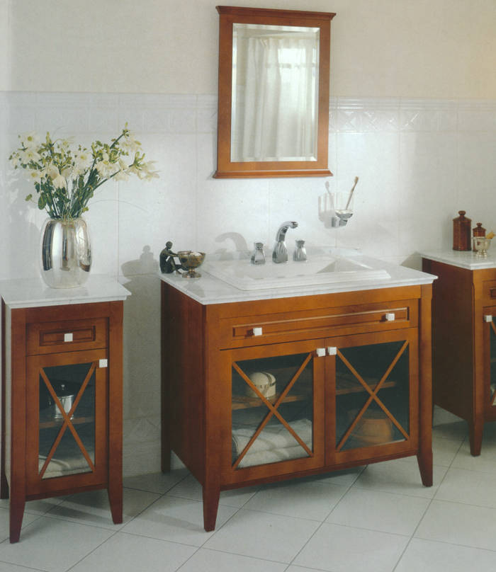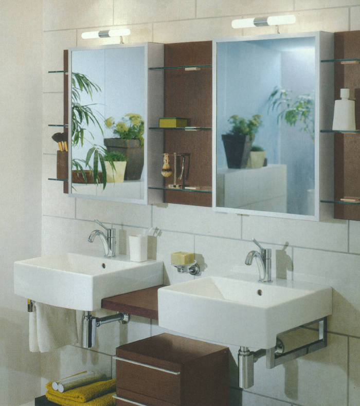 Waschtisch mit Unterschrank, Spiegel, Sitzbank und Hochschrank