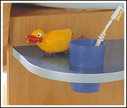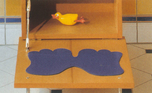 die Sitzbank wurde extra-weich gepolstert, der Zahnputzbecher