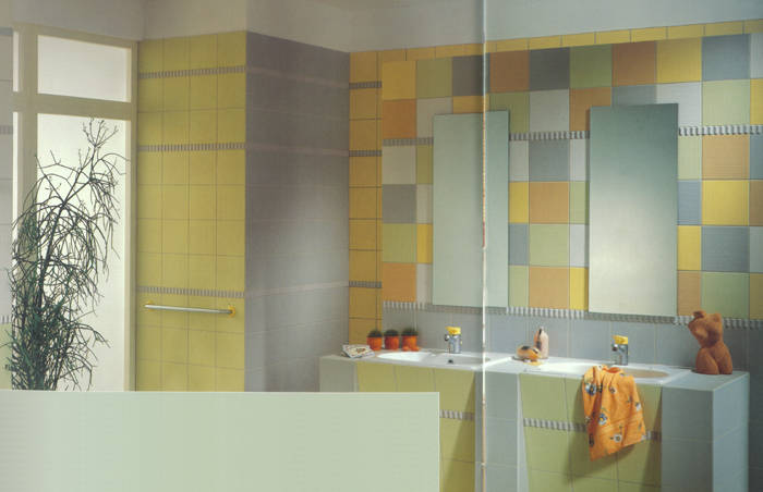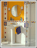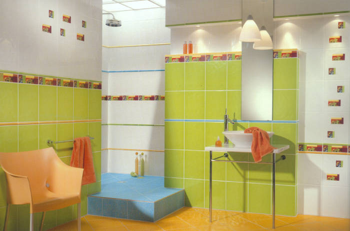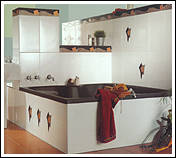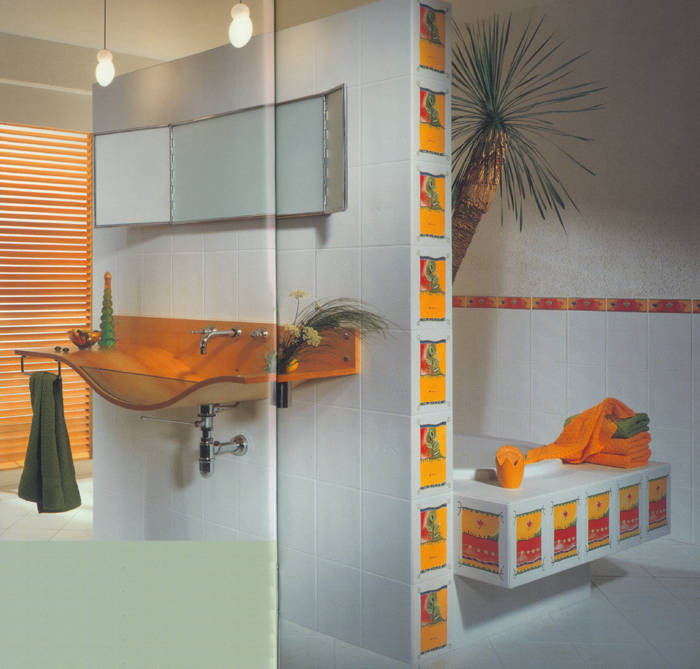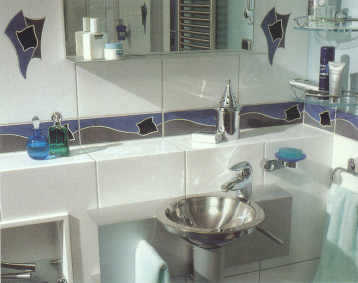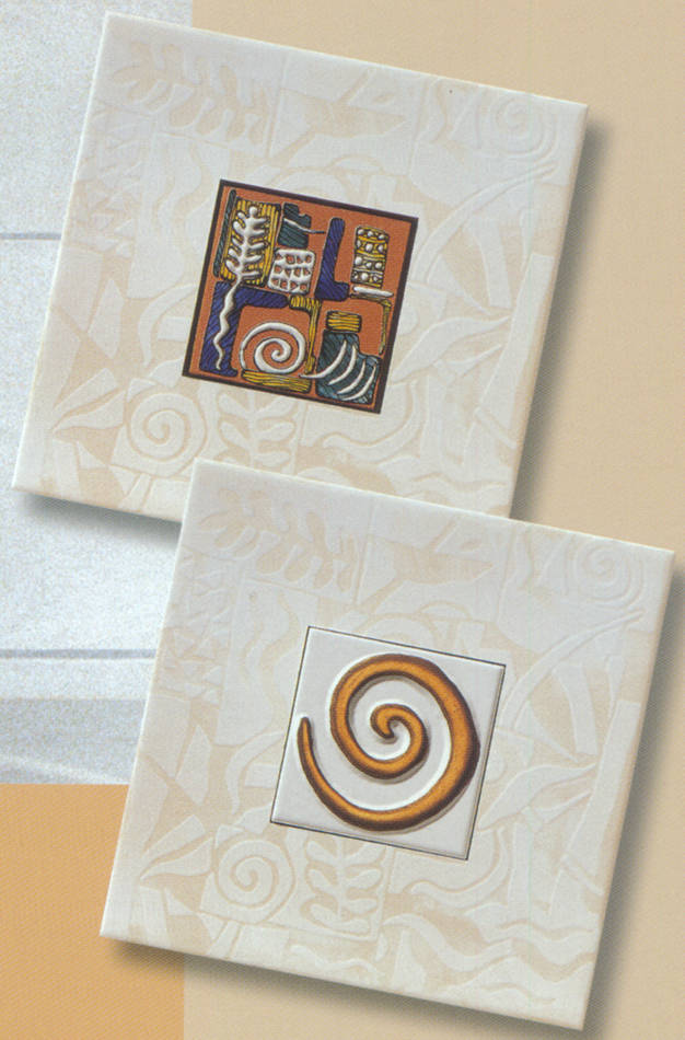 wasserstrahlgeschnittene Steingutfliesen mit passenden Einlegern