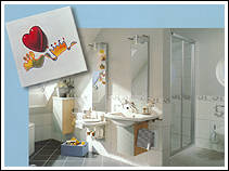 großflächiger Motivdarstellung, dazu die abgestimmten Bodenbeläge