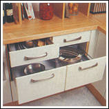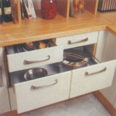 Alle gezeigten Küchen sind mit Metall Schubkästen ausgestattet.
