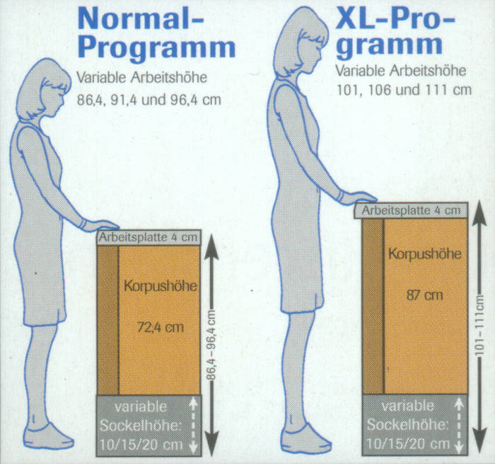 Unterschiedliche Arbeitshöhen ermöglichen individuelles, ergonomisches Arbeiten und bieten mehr Stauraum in der Küche.
