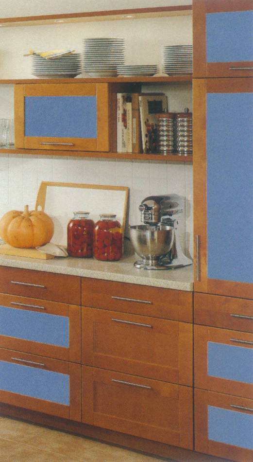 Front 238 Postforming Buche hell, kombiniert mit taubenblau. Eine designorientierte Front- und Farbgestaltung.