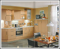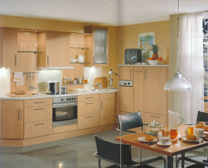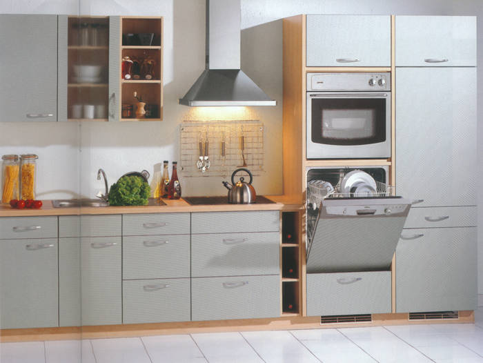 Das helle Buche-Dekor in Verbindung mit dem Alu-Farbton macht Lust auf trendgemäße Küchenplanung. |