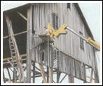 und industriellen Bauwerken, große Holzmengen wieder verwendet
